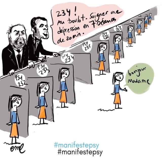 ☠️ adieu à la vraie psychothérapie et la qualité d’un soin psychique sur mesure ⚠️ Bonjour à la pseudo-thérapie en 8 séances par an de 20 à 30 mins maxi, avec des psychologues conventionnés CPAM travaillant à la chaîne.