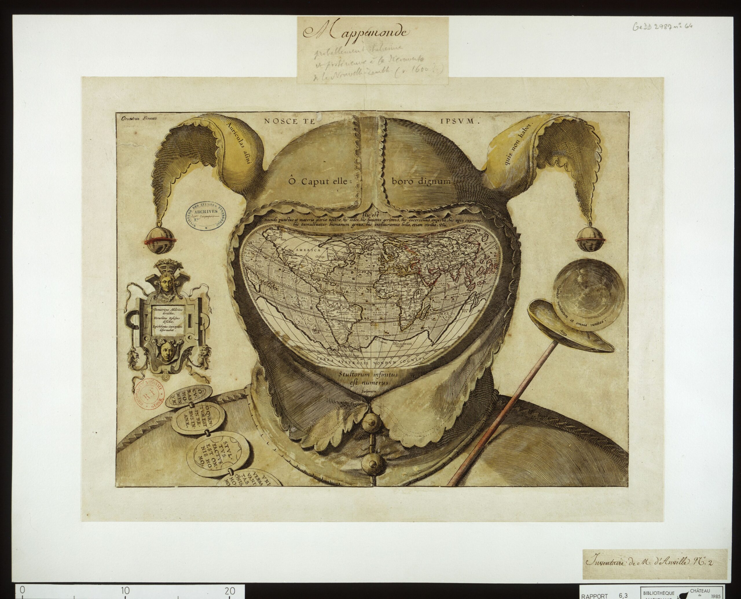Étrange estampe que celle du « Monde dans une tête de fou », Gourmont, 1590.